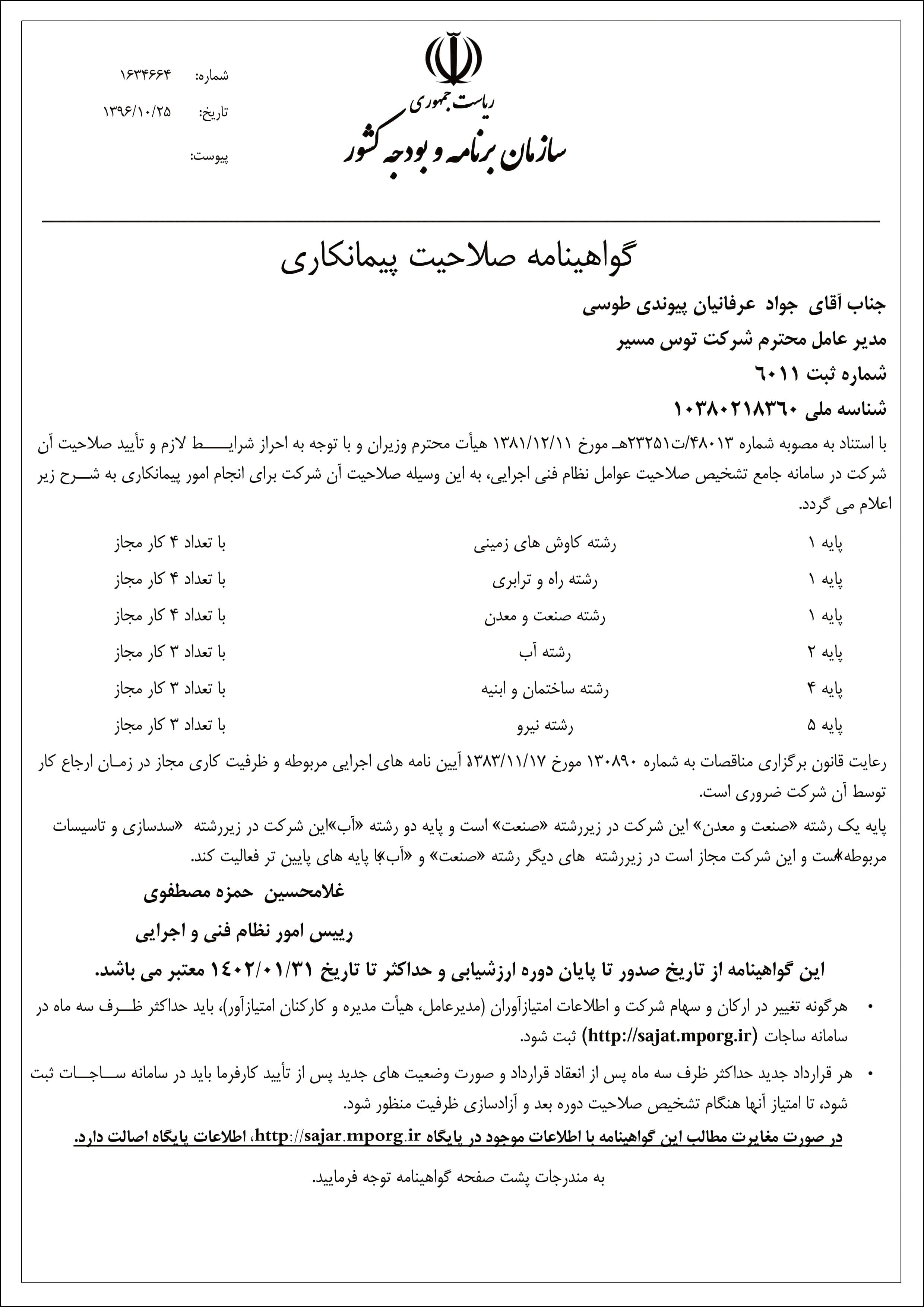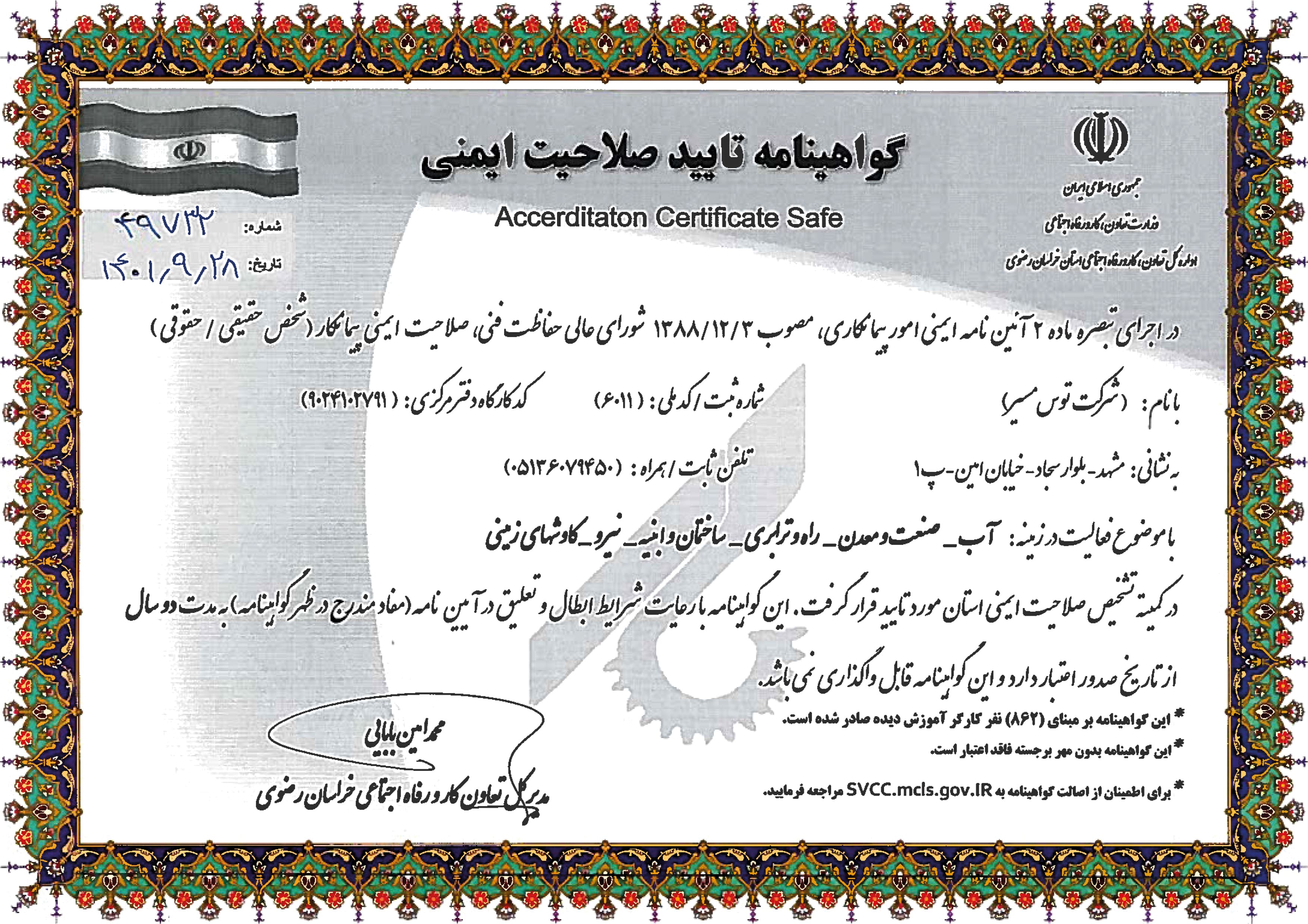 شرکت توس مسیر با هدف ارائه خدمات فنی ، مهندسی ، ساخت ، نصب ، راه اندازی و اجرای پروژ های عمرانی ، صنعتی و معدنی در سال 1368 تاسیس شده است .